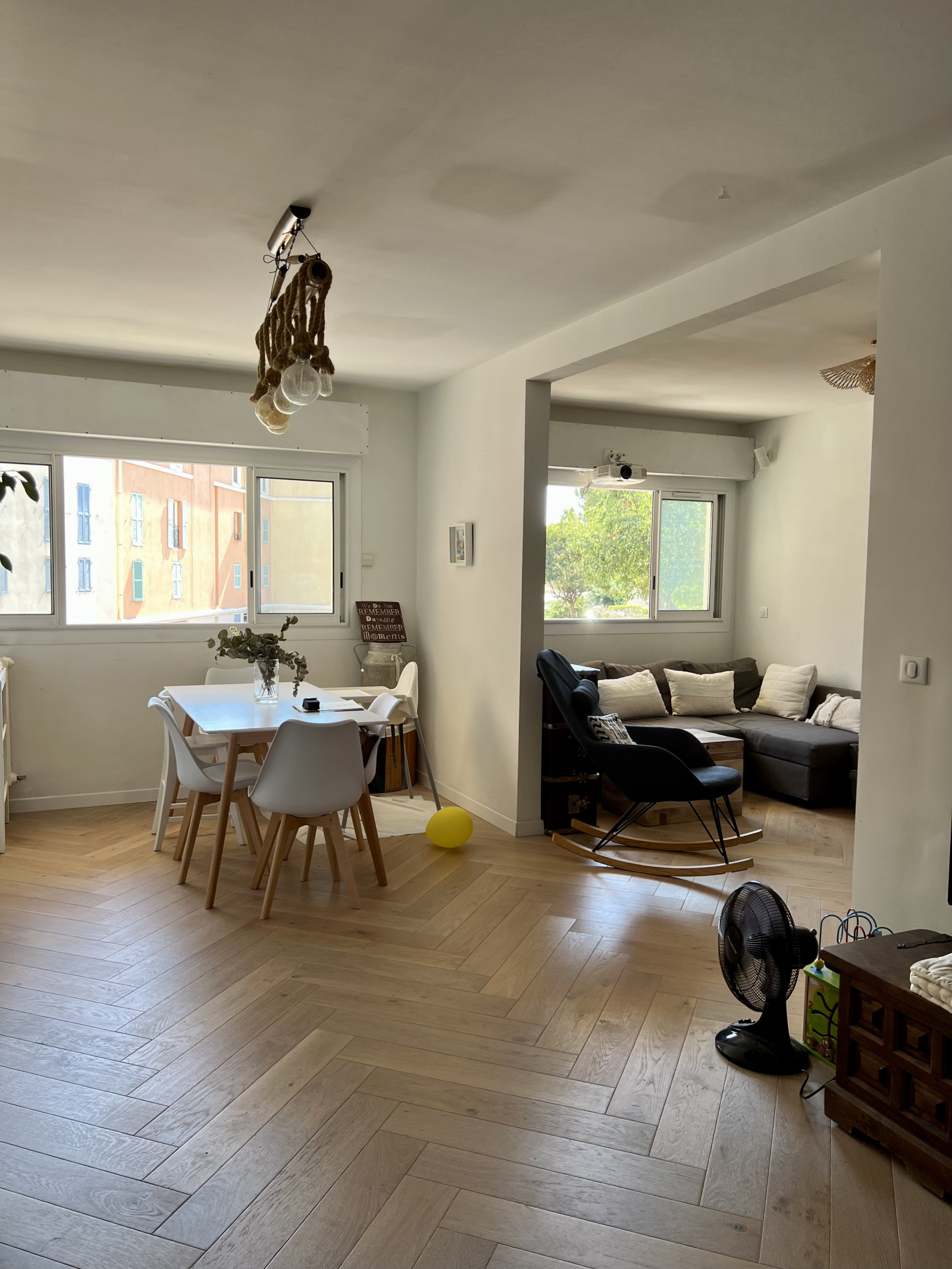 Il se compose d'une entrée donnant sur la salle à manger ainsi que le salon avec une cuisine américaine ouverte aménagée et semi-équipée, deux chambres, une salle d'eau, un WC séparé, une loggia et une cave.